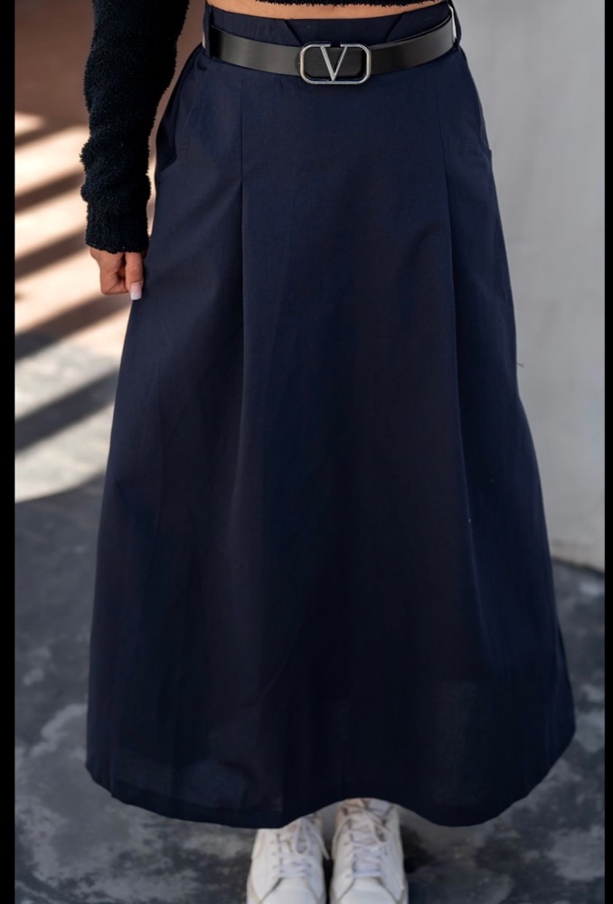 دامن کمر چرم رنگ سرمه ای جنس لینن درجه یک فری سایز