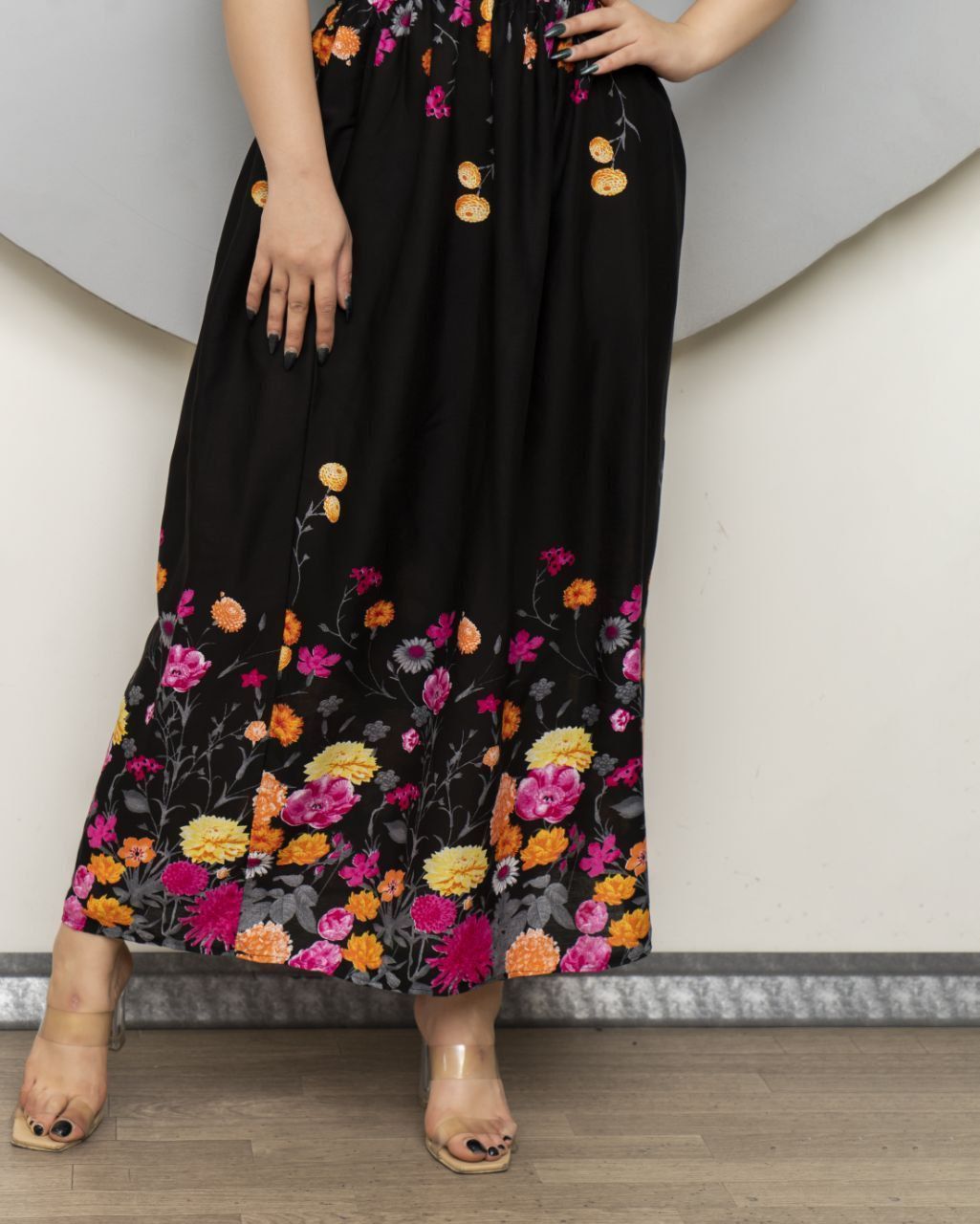 دامن نخی حاشیه دار جنس نخی بدون آبرفت رنگ مشکی فری سایز