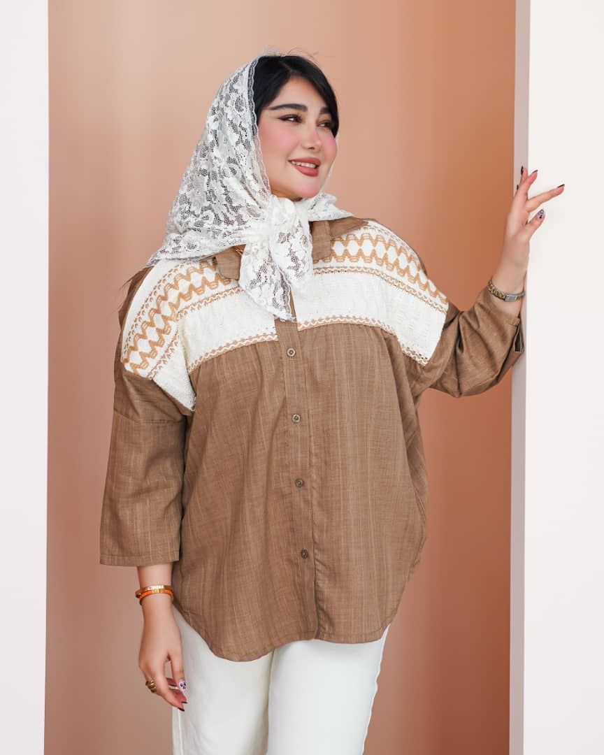 شومیز جلوپیل دکمه شکلاتی جنس لینن اسلپ فری سایز