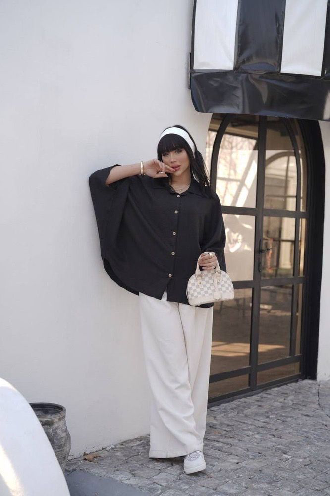 شومیز کیمونو جنس شانتون صوفیا فری سایز مناسب (۳۸تا۴۸)رنگ مشکی. رنگبندی(در ۶رنگ)داخل سایت