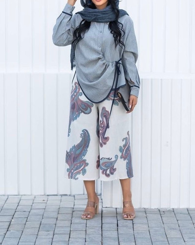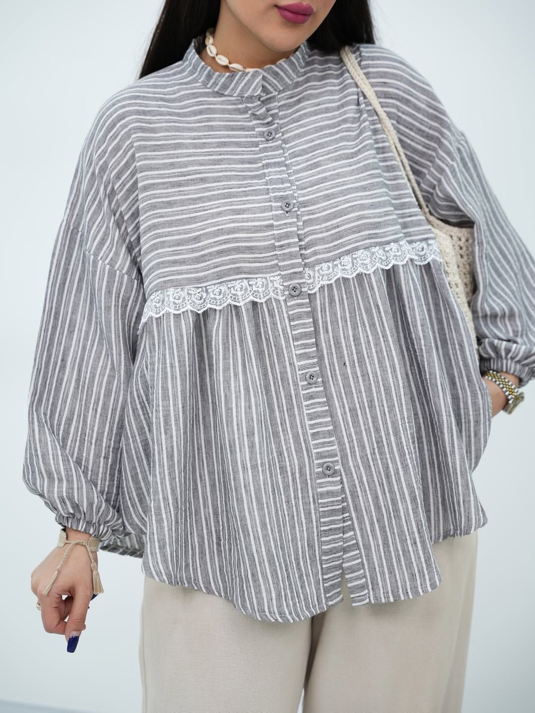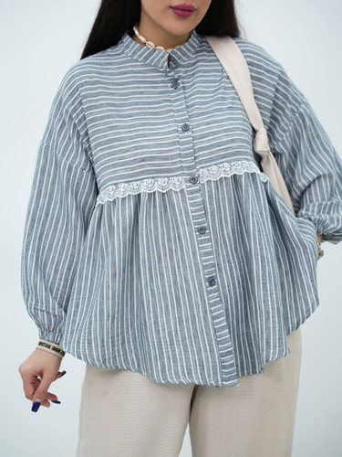 شومیز راه راه طوسی لینن