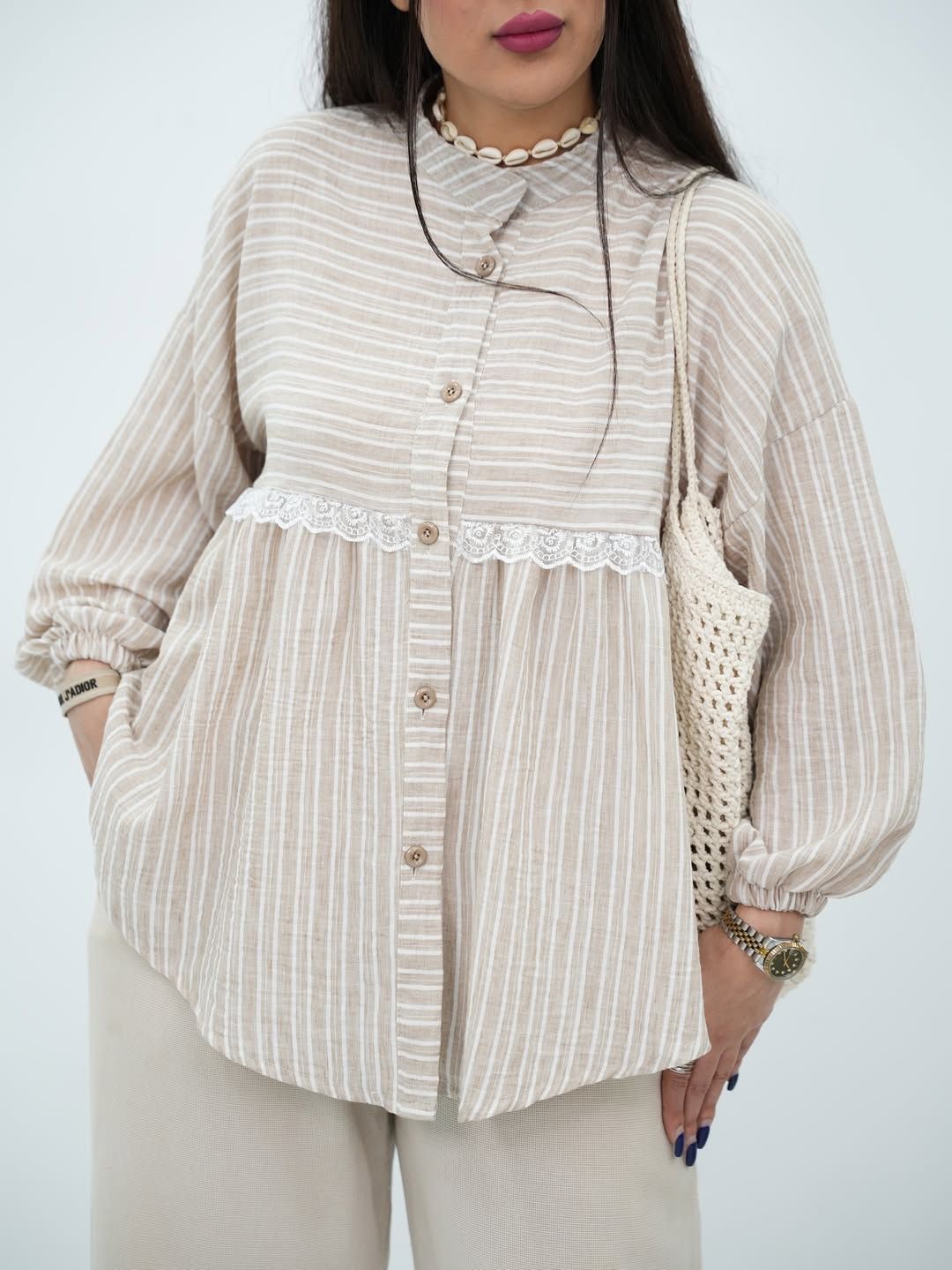 شومیز راه راه کرم لینن