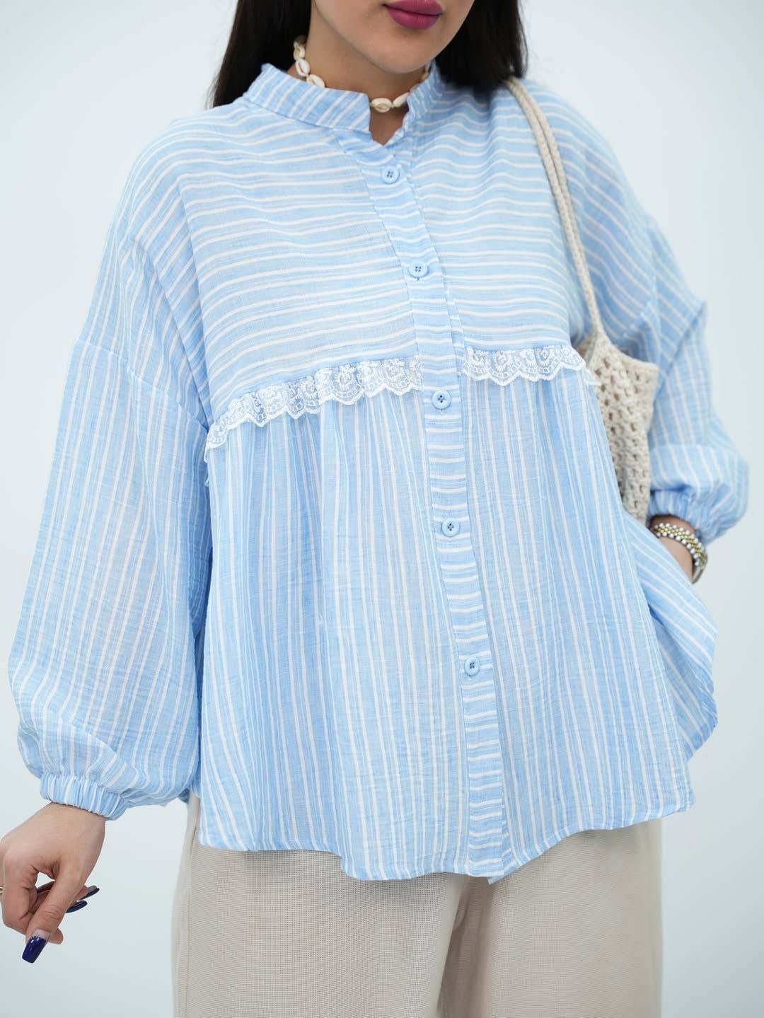 شومیز راه راه ابی روشن لینن