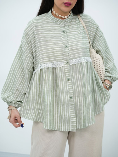 شومیز راه راه سبز لینن
