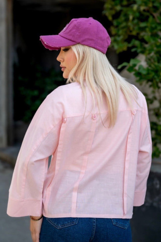 شومیز جلوپیل دکمه صورتی