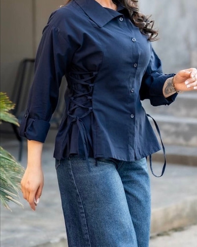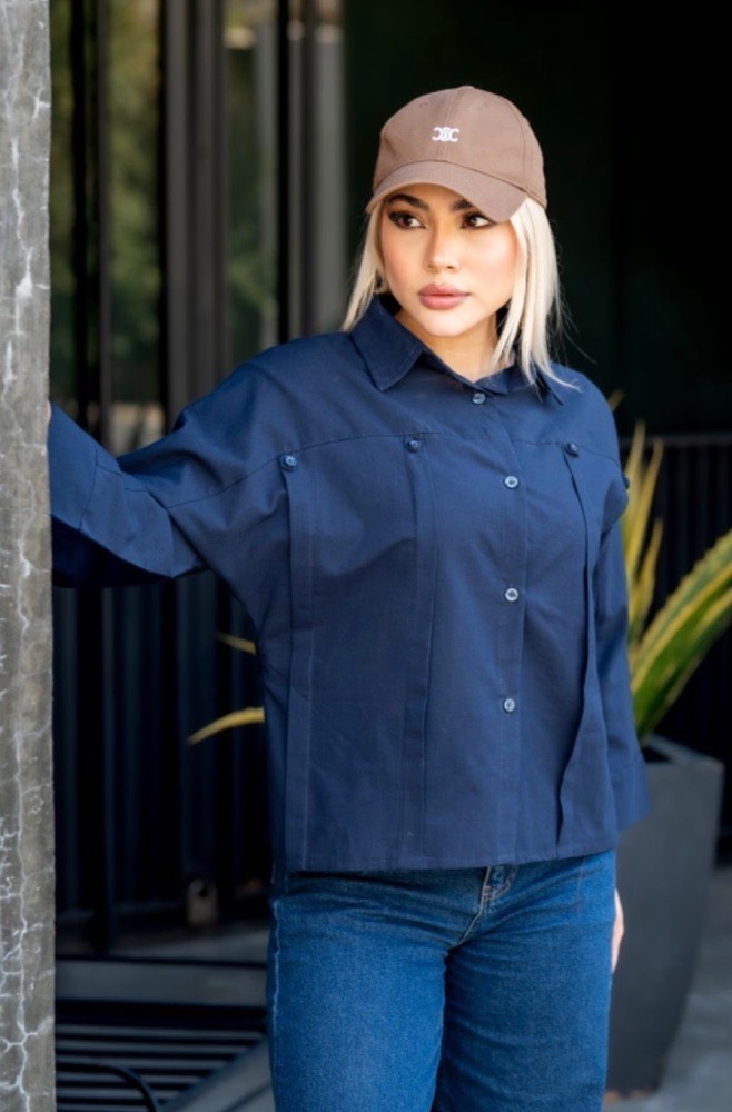 شومیز جلوپیل دکمه سورمه ای